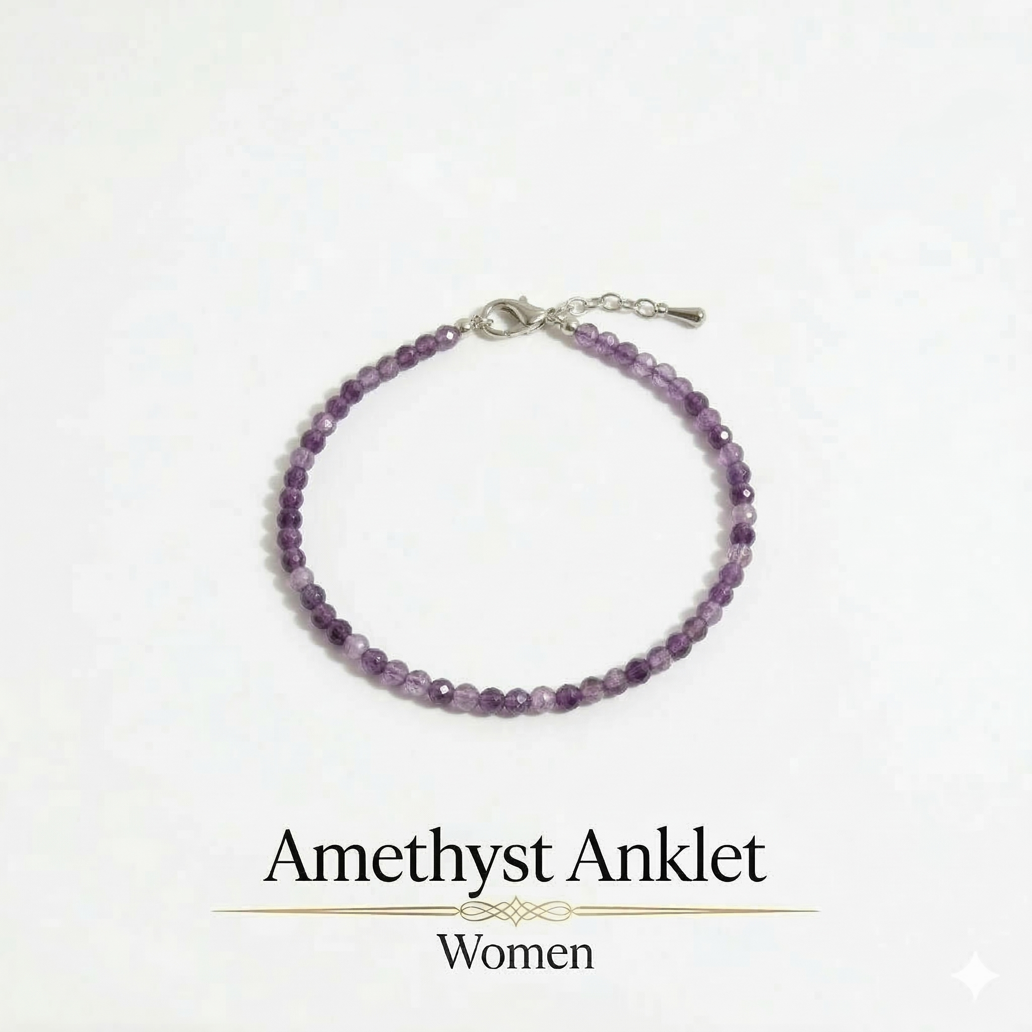 This anklet features a minimalist and modern design that pairs effortlessly with any outfit, adding a subtle yet stylish touch to your look. Made with genuine natural Amethyst stones, each anklet comes with a stone authenticity certificate to ensure quality and originality.
